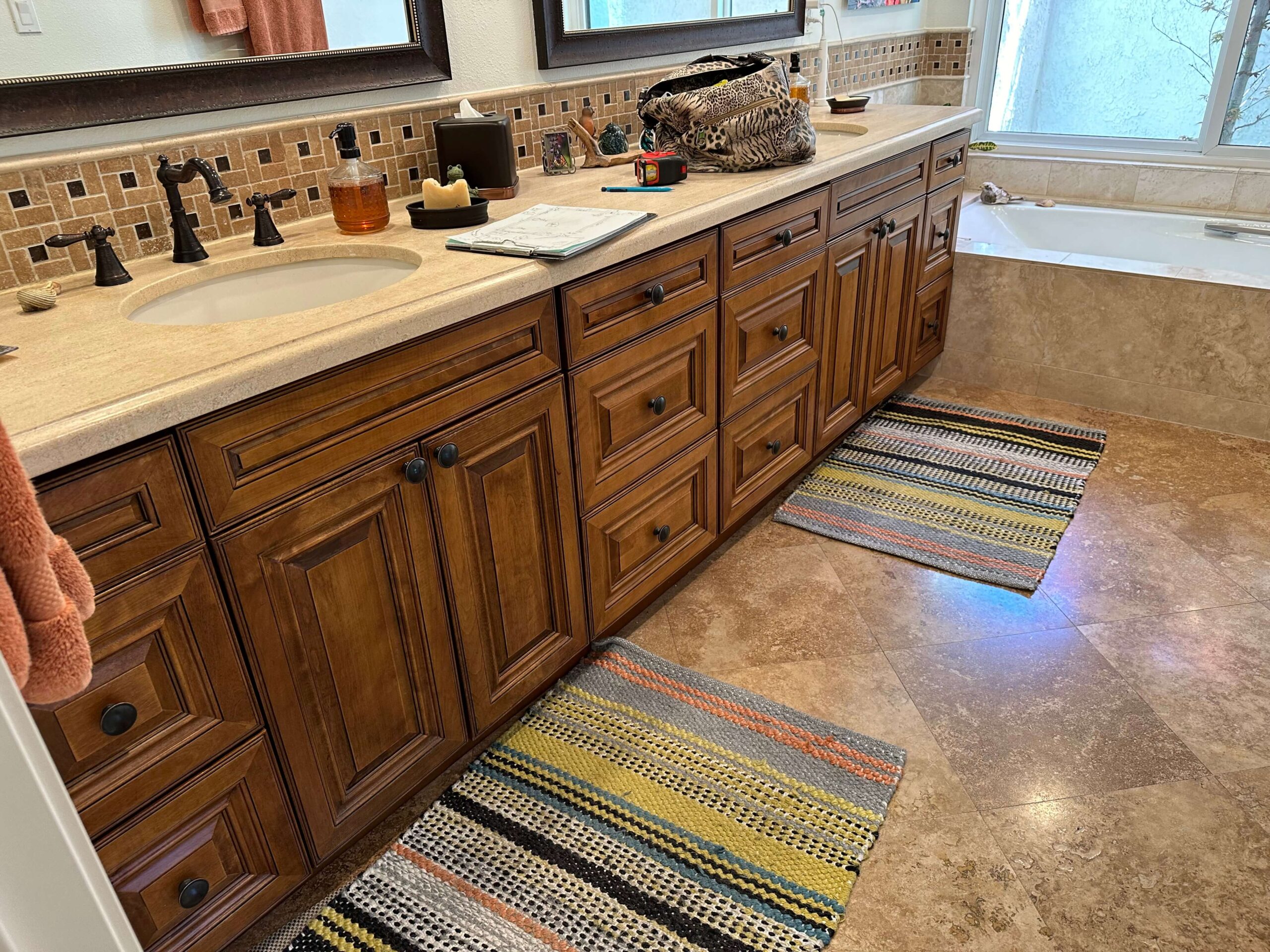 The homeowners wanted to transform their dated master bathroom into a sophisticated, spa-like retreat that combined elegance with everyday convenience. To achieve this, we reimagined the space from top to bottom, incorporating custom cabinetry, tile work, flooring, fixtures, and finishes.