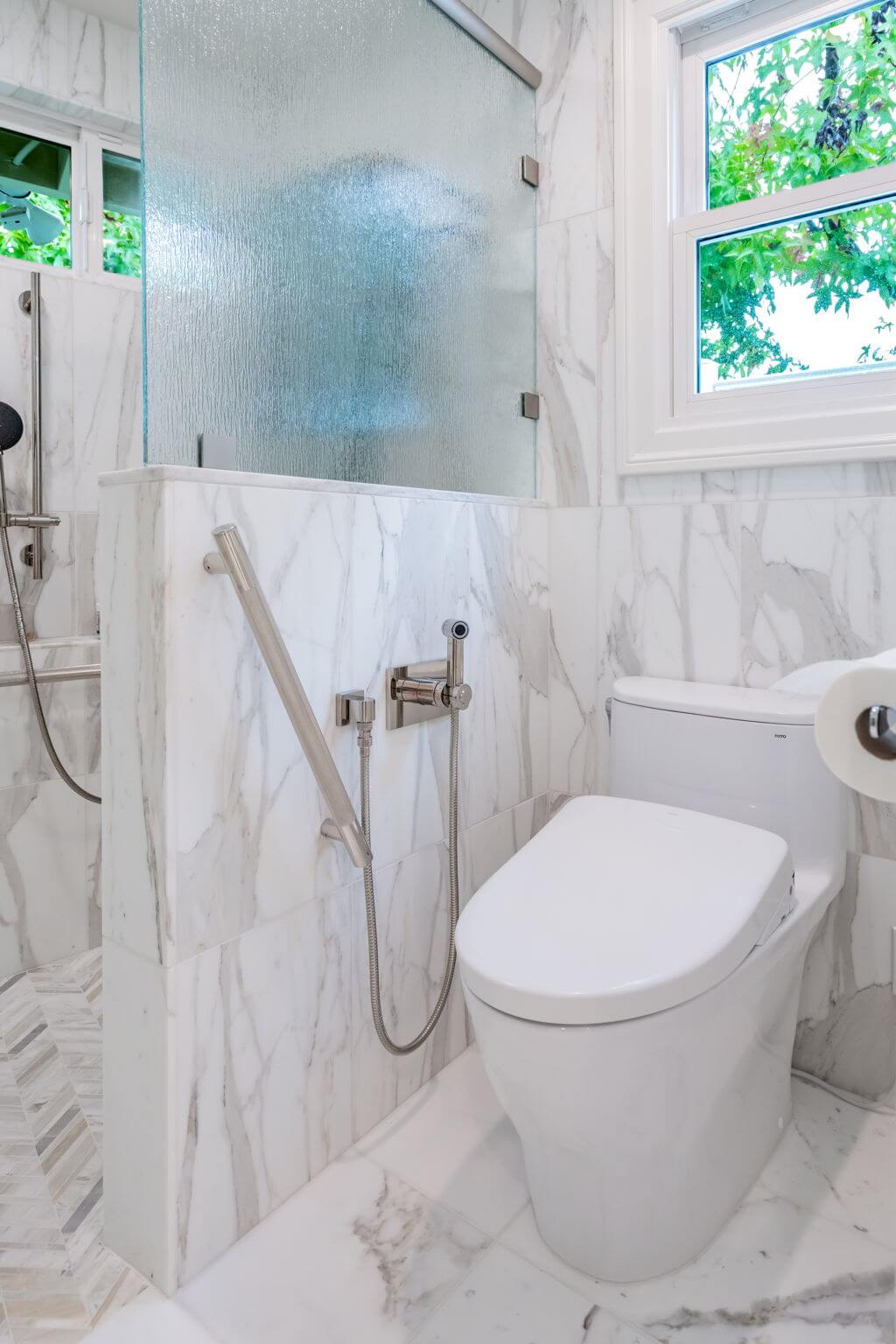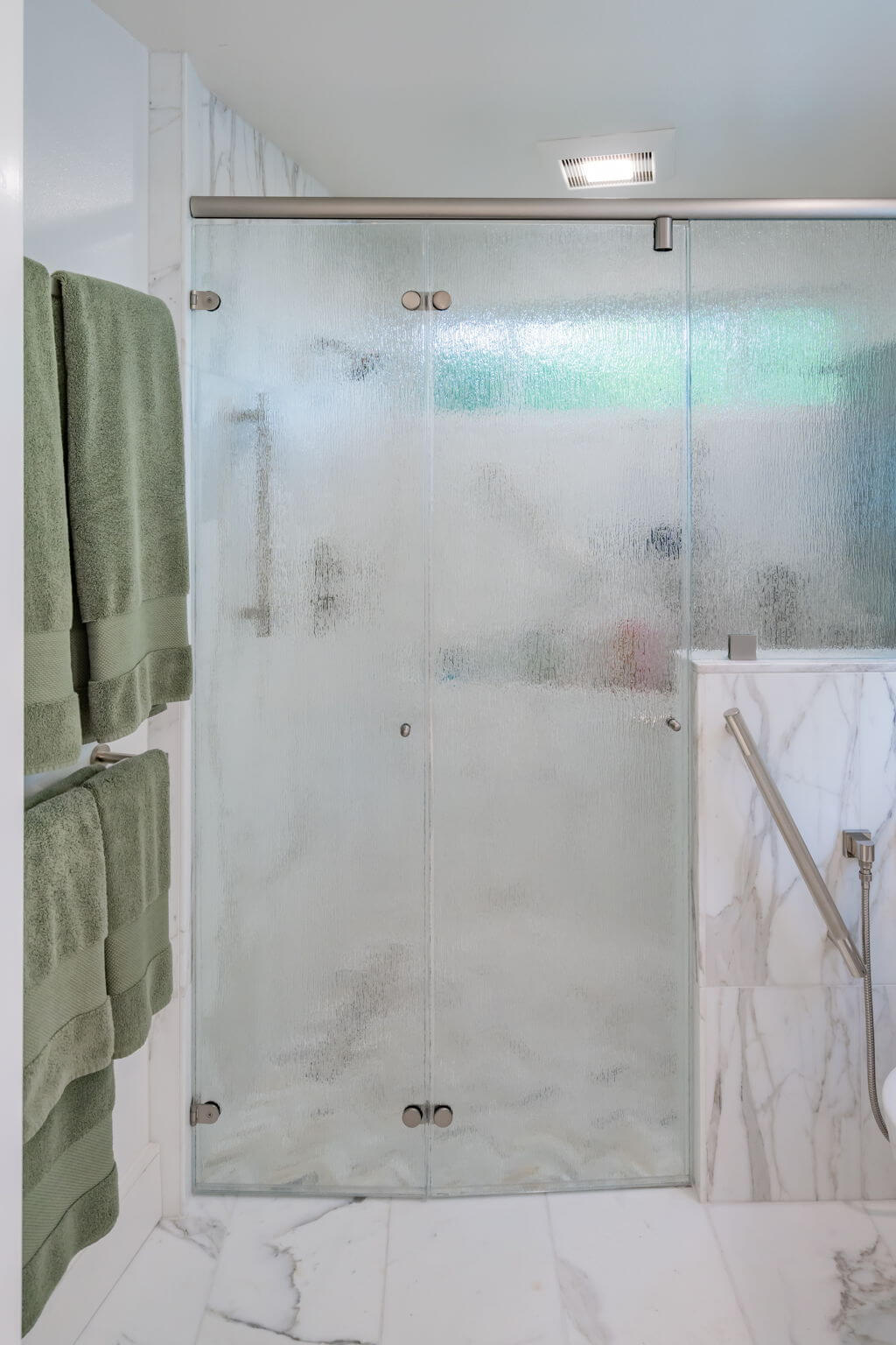 Before: The main bathroom offered good space but felt dated and closed-off, with materials that dulled the natural light.