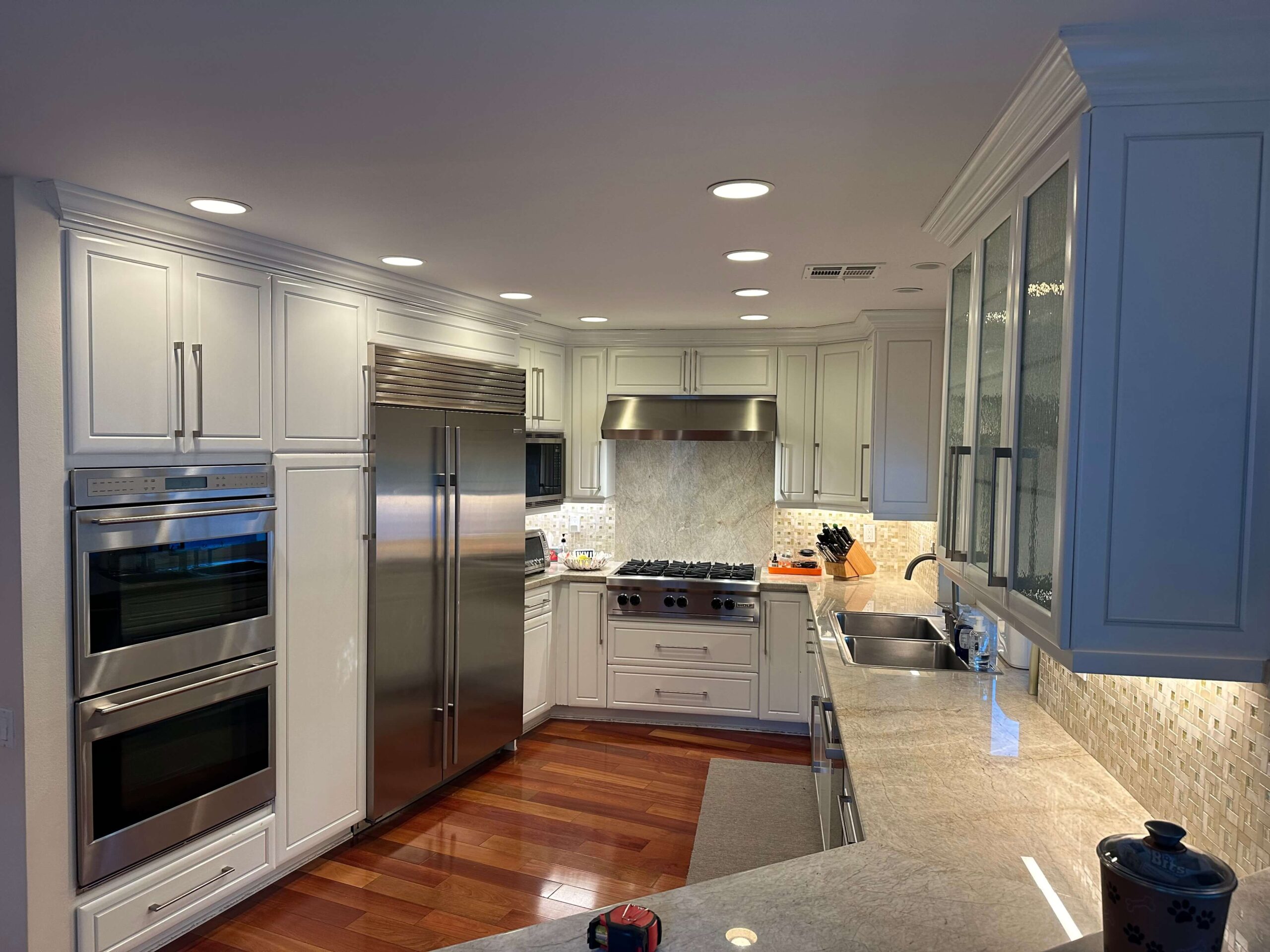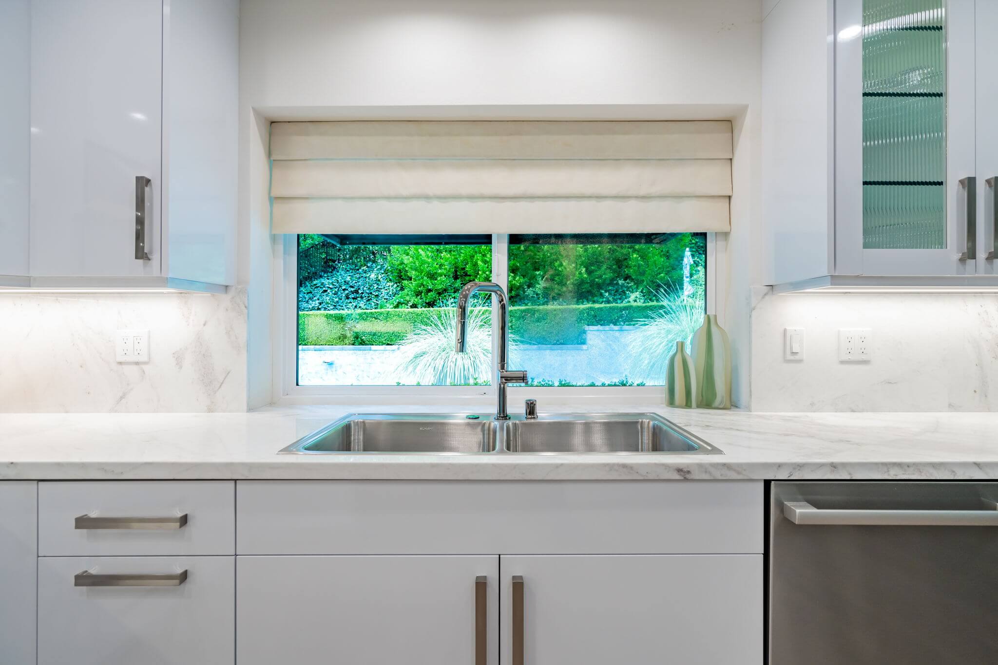 This project started with a clear goal: to refresh a dated home into a contemporary and cohesive style, without losing its warmth or comfort. State Restoration was brought in to reimagine the kitchen, bathrooms, flooring, and create a custom feature that would visually tie the main living spaces together.