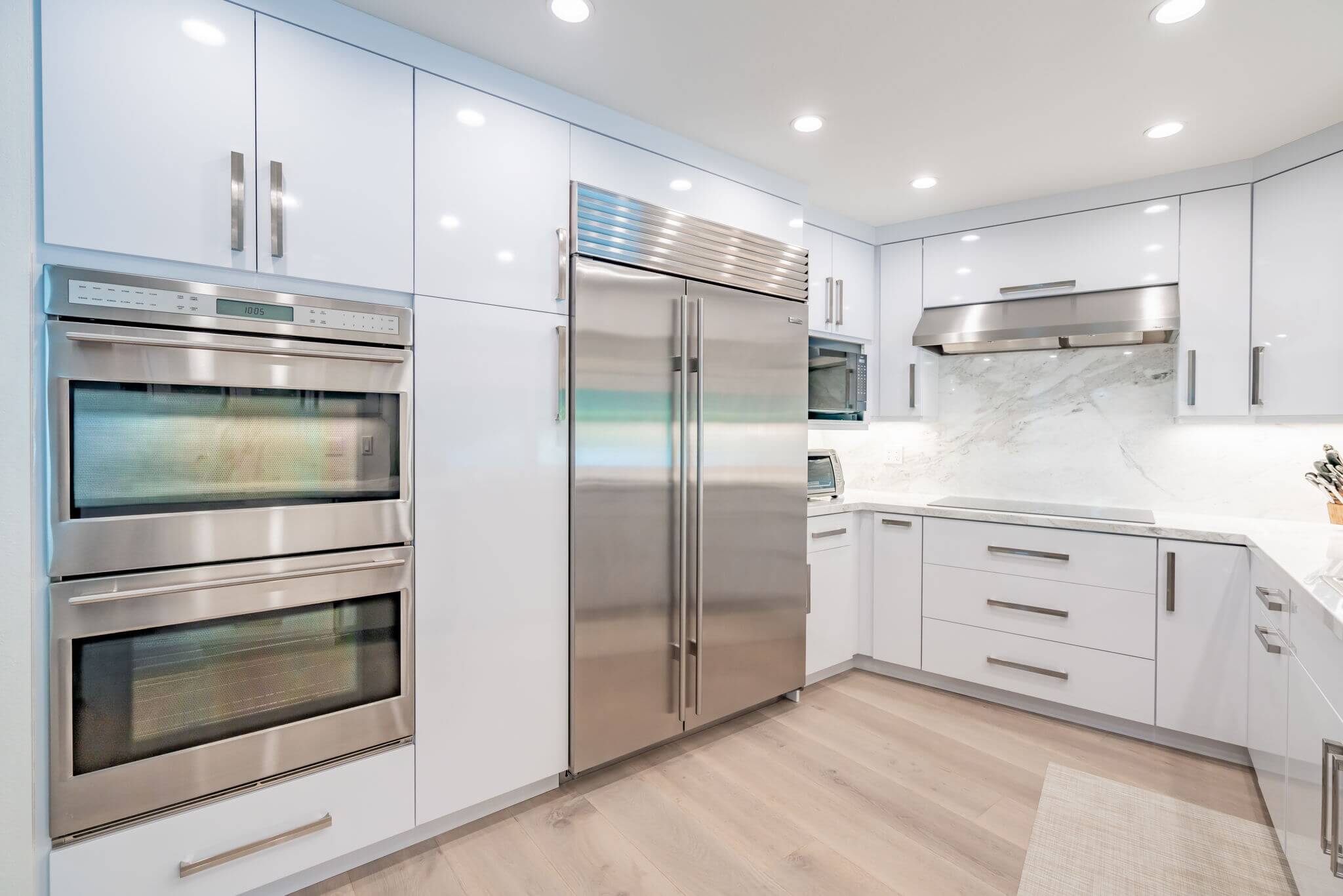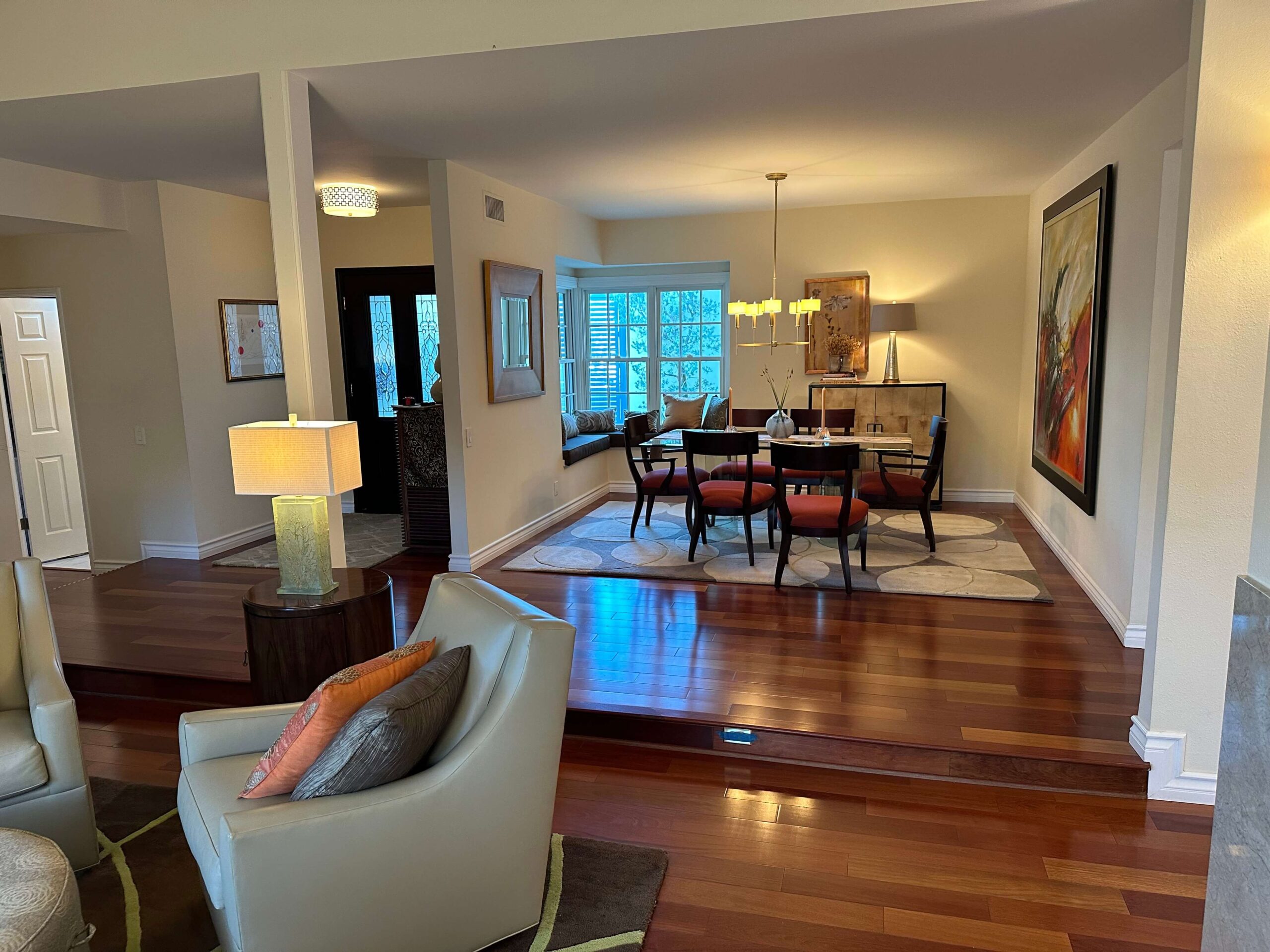 After: We incoporated lighter finishes which brightened the room. The new layout emphasizes function and flow while bringing a refined European influence to the space.