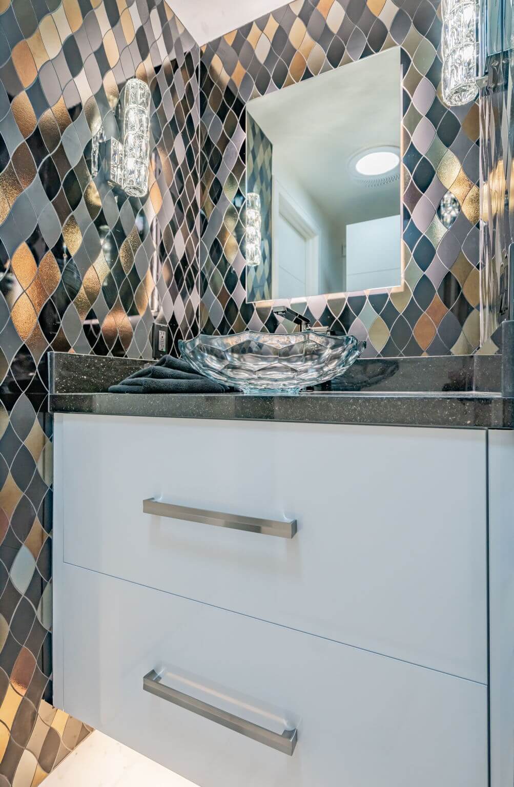 After: The redesign focused on contrast and calm. Clean surfaces, soft lighting, and balanced textures now give the room a spa-like feel while keeping it practical for daily use.
